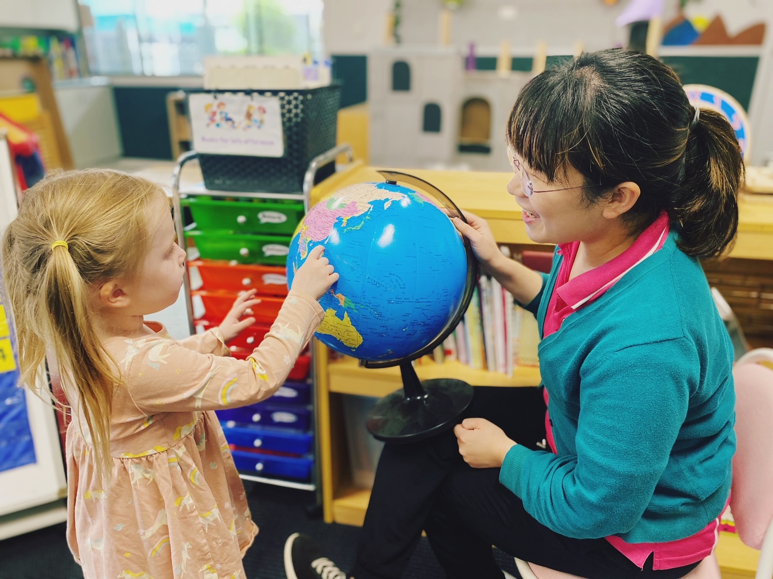 In all kinder programs, the curriculum is designed and implemented by a university-trained Early Childhood Teacher. If the child is 3 or 4 years old but will not be deemed a 3 or 4-year-old kinder child until the following year, they will still access the kinder program. They will just benefit from additional kinder time. We move the recent 3 and 4-year-olds up to this room so they will be with children of a similar age group. The program is flexible and will cater for the range of ages and developmental levels of the children in the group. It is very common for children to spend two to three years in the kinder room.
